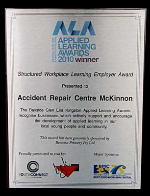 Accident Repair Centre McKinnon is proud to have been awarded 2 of the prestigious 2010 Applied Learning Awards.